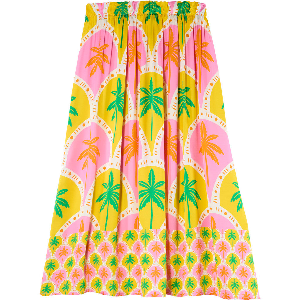 Luxus, den man fühlen kann. Das Geheimnis liegt in der kostbaren Verbindung von 70 % feinster Viskose und 30 % edler Seide. Diese Mischung ist eine wahre Streicheleinheit für deine Haut. Der Stoff fällt unglaublich fließend und leicht – bei jedem Schritt bewegt er sich sanft mit dir, wie eine sanfte Brise, die durch Palmen weht. Die Seide schenkt dem Rock eine subtile Eleganz und eine Kühle, die dich auch bei strahlendem Sonnenschein wunderbar erfrischt.