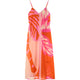 Puristische Eleganz trifft auf verspielten Charme. Das Design besticht durch seine schlichte Raffinesse. Die filigranen Spaghettiträger und der sanfte V-Ausschnitt betonen deine Weiblichkeit auf eine ganz natürliche, unangestrengte Weise. Das Besondere: Ein dezentes Spiel aus zwei verschiedenen, sommerlichen Mustern verleiht dem Kleid eine spannende Tiefe, ohne seine Leichtigkeit zu verlieren. Es ist ein modisches Statement für Frauen, die das Spiel mit Kontrasten lieben.